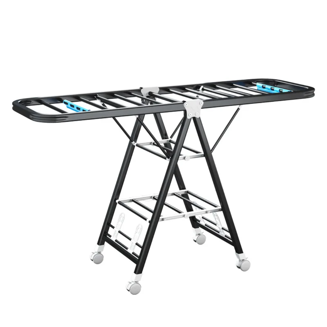Dry your clothes with ease using this heavy-duty foldable clothes drying rack. Designed for indoor and outdoor use, it features a large floor-standing frame with wheels for portability. With its big size and sturdy build, it’s perfect for handling large laundry loads while saving space when folded.
