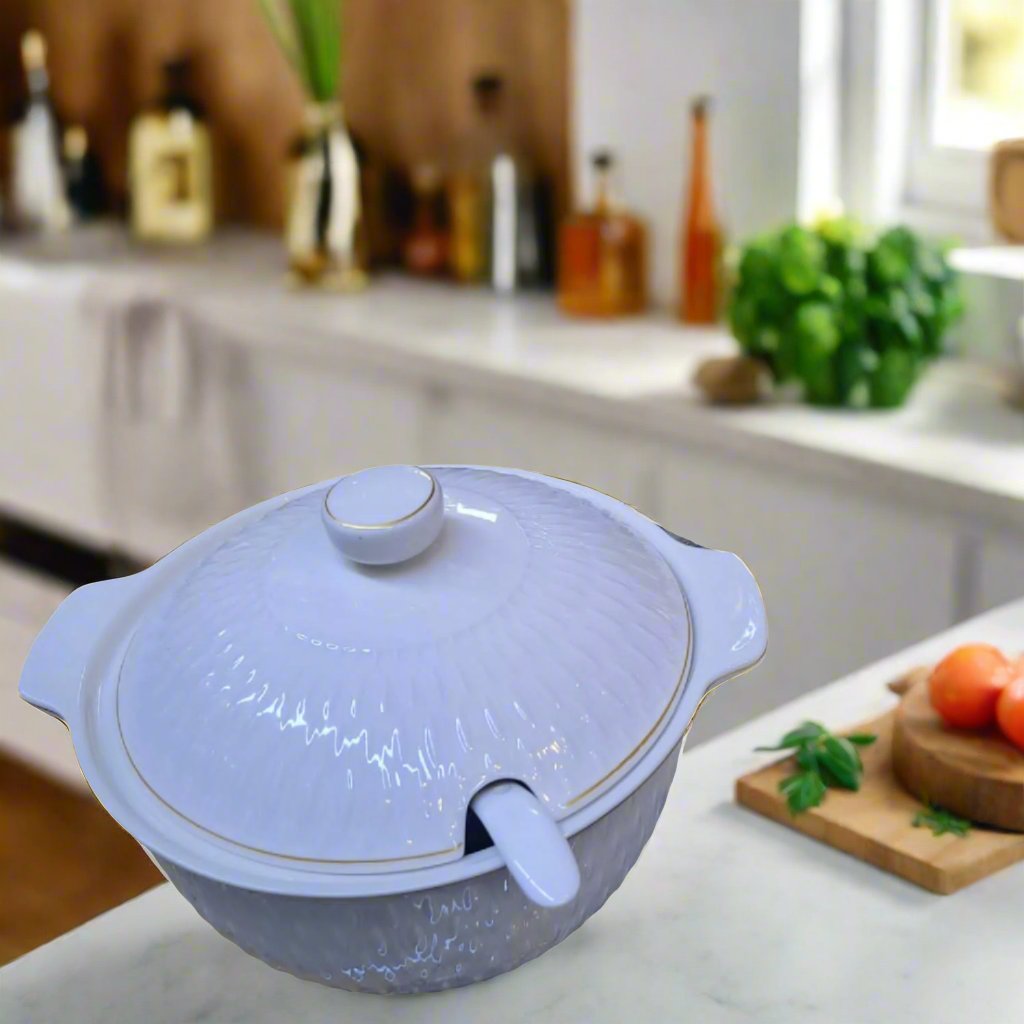 Elegant High Quality Porcelain 1000ml Capacity White Serving Dish with Gold Rim | One Piece Serveware Dish is backordered and will ship as soon as it is back in stock.