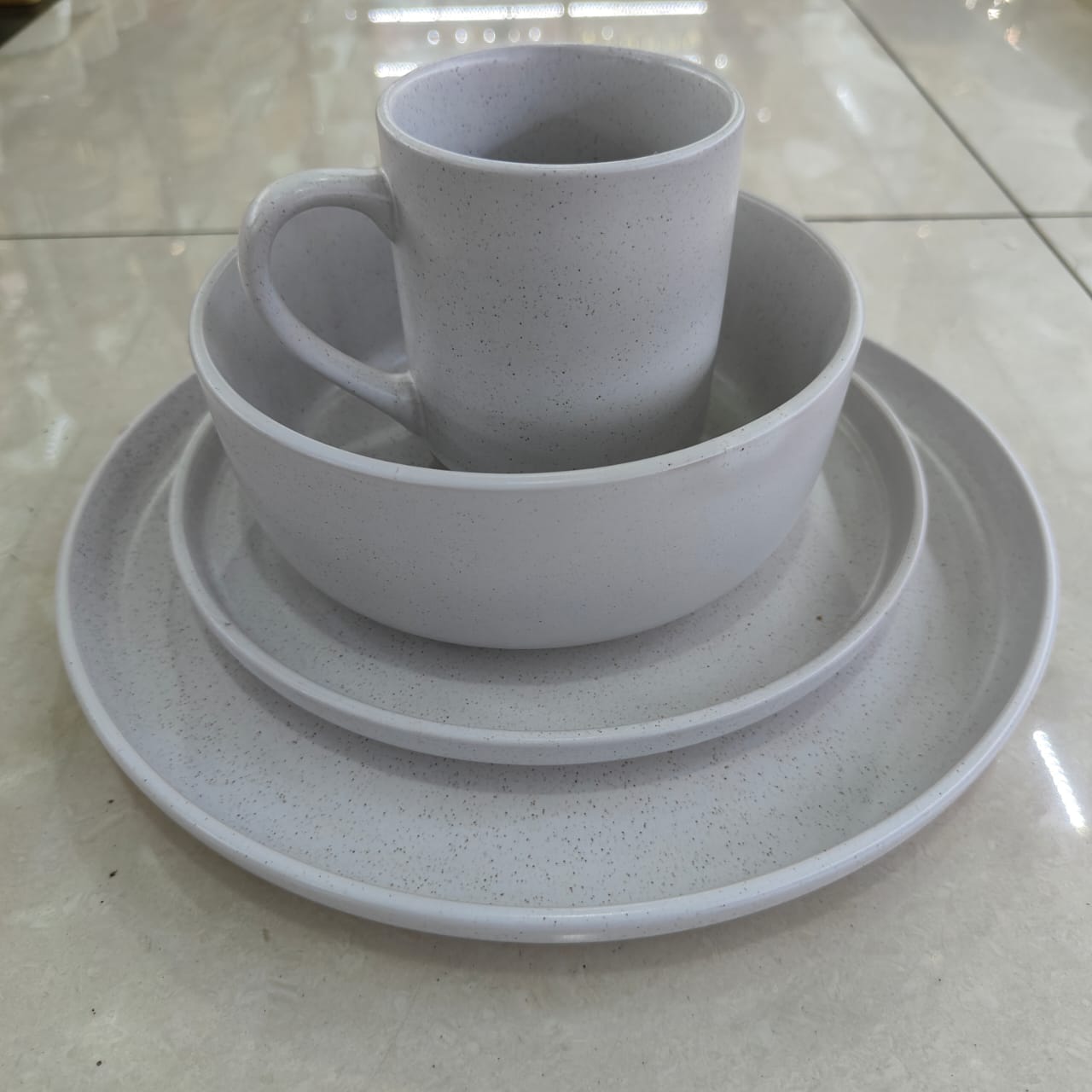24pcs Ceramic Dinner Set – Plates, Bowls, Cups, and Side Plates - Grey is backordered and will ship as soon as it is back in stock.