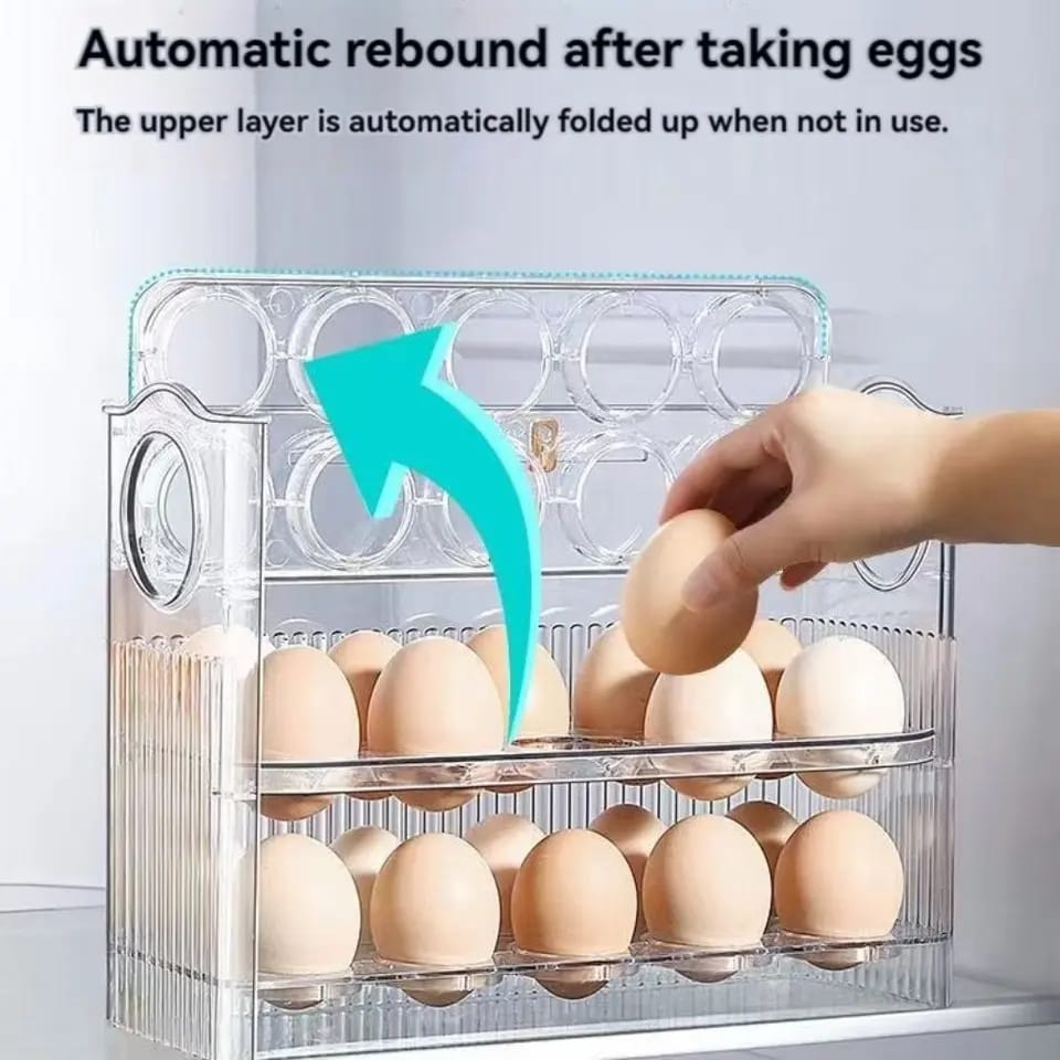 Organize your eggs with ease using the 30-Grids Egg Storage Box. This large-capacity egg case holder is perfect for keeping your eggs fresh and easily accessible. The transparent design lets you quickly see how many eggs you have left.