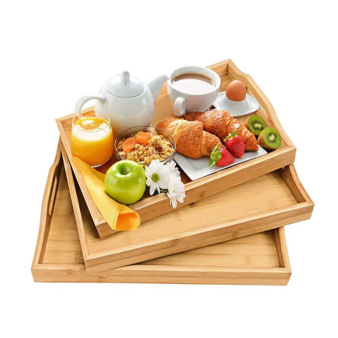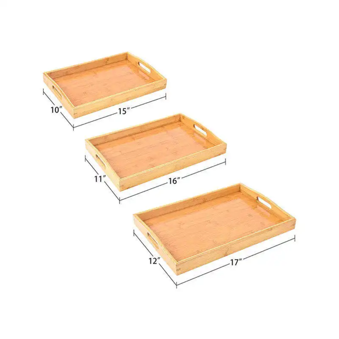 3 in 1 Bamboo Serving Trays Set Eco-Friendly Nested DesignPerfect for Dining, Entertaining, or Decor