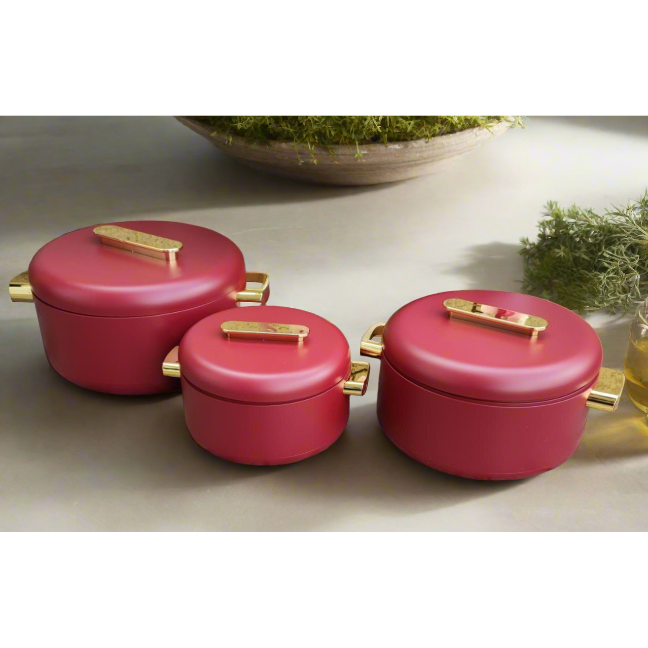 Luxurious Insulated Hotpots 3-Piece Set with Magnetic Lids - Red is backordered and will ship as soon as it is back in stock.