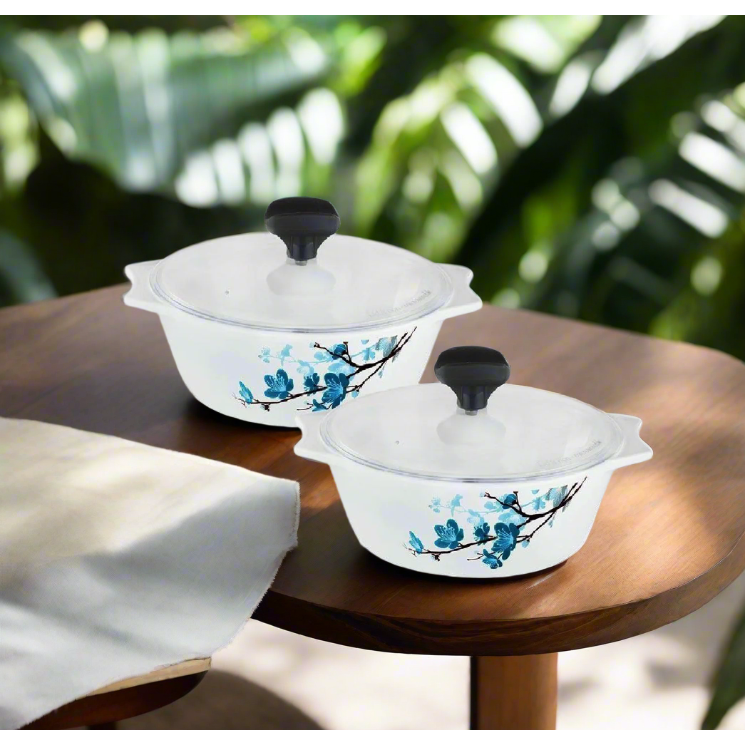 4 pcs White Glass Casserole Set (2 x 1000 ml with Plastic Lid) Mimosa
