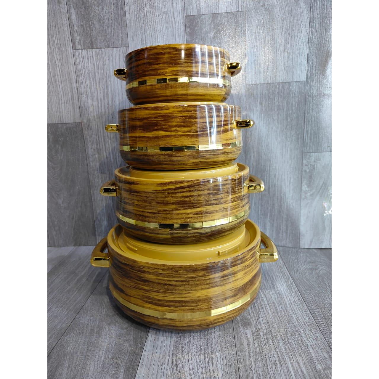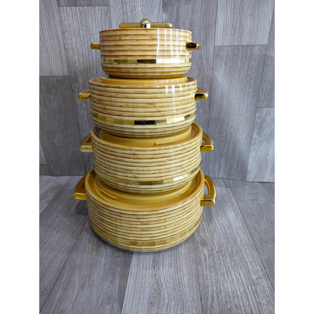 The 4-Piece Gold Plated Hot Pots Set combines style, durability, and efficiency, making it a must-have for any kitchen or dining table. This set is designed to keep food hot for extended periods, ensuring your meals stay fresh and warm.