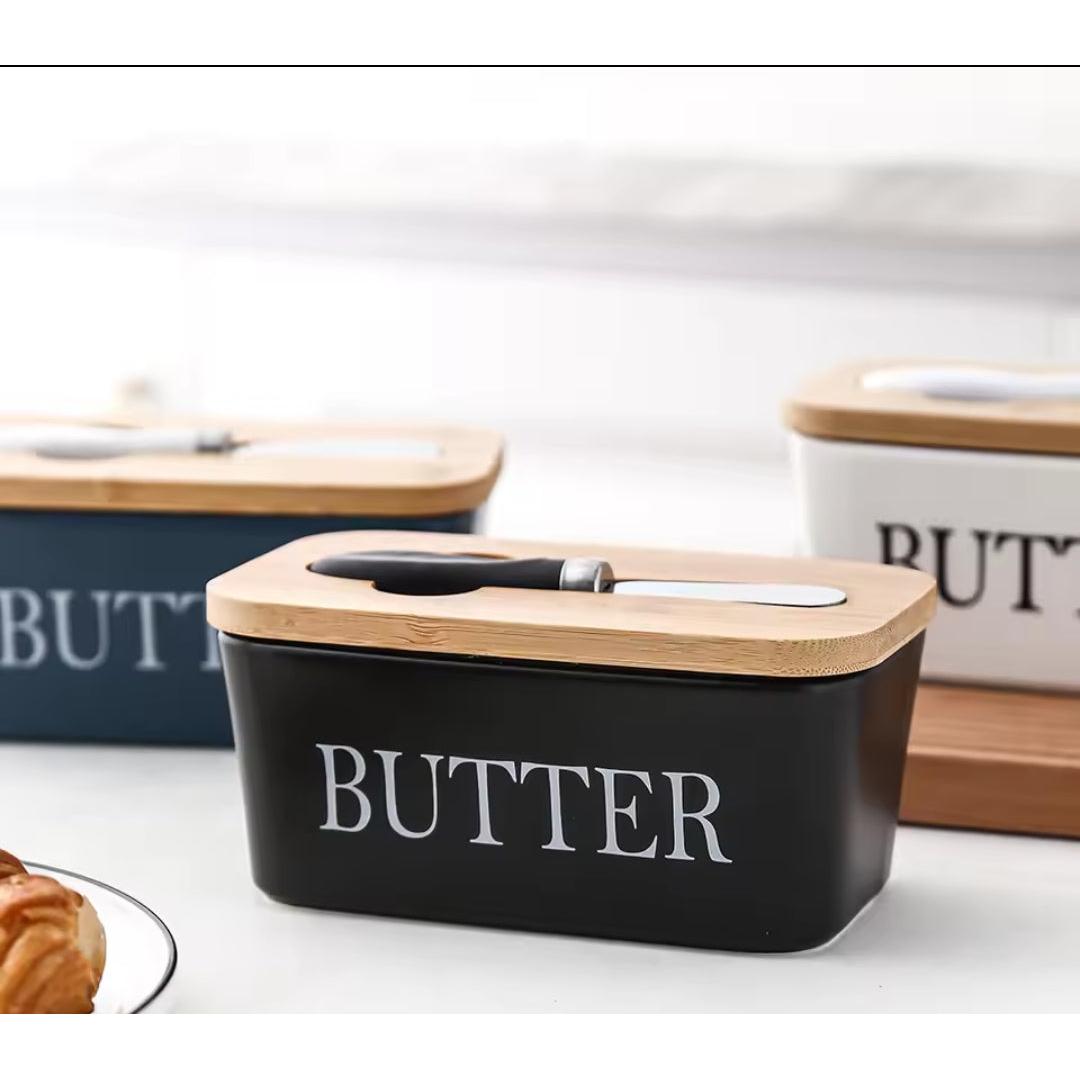 850gms High quality Ceramic Butter Dish with Bamboo Lid Multiuse Preservation Box Ceramic Butter Dish Kitchen, Dining