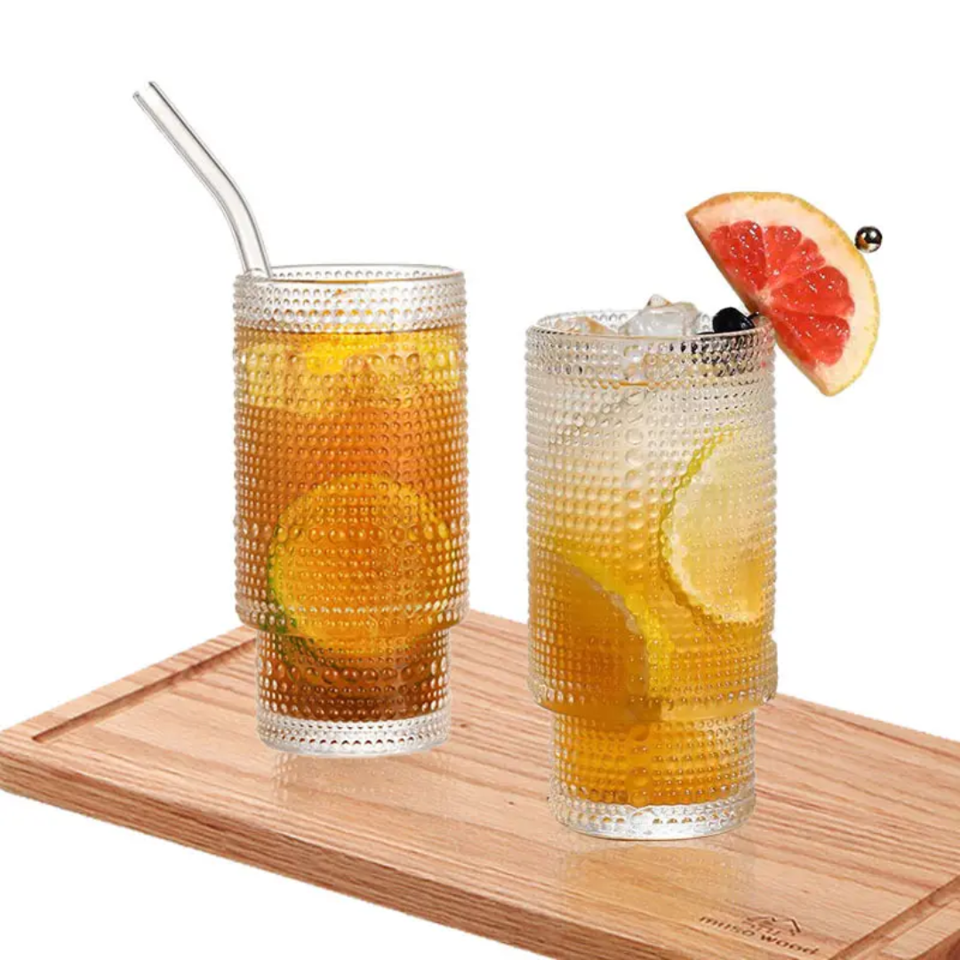 Sip in style with our Embossed Vintage Glass Cup. Featuring intricate embossed detailing, a natural bamboo lid, a reusable straw, and a cleaning brush, this 320ml cup offers the perfect blend of vintage charm and modern convenience for your favorite drinks.