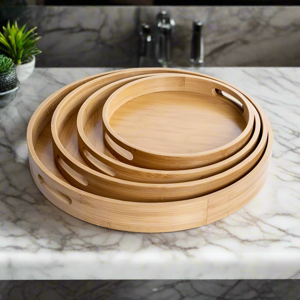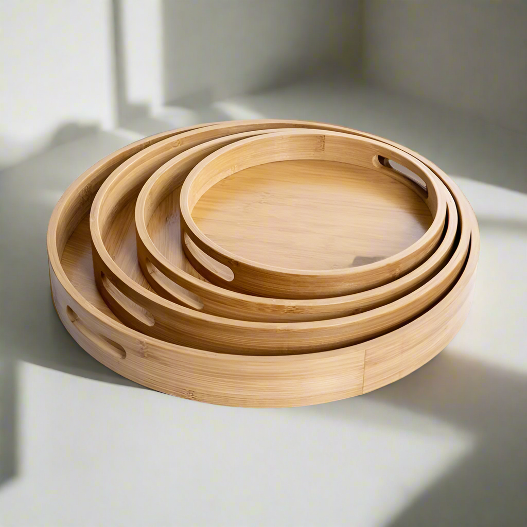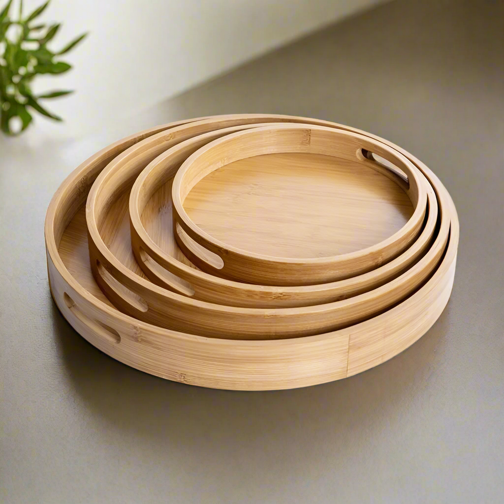 Multifunctional Big Sized 4 in 1 Bamboo Trays Set of 4 Eco Friendly & Durable 40cm, 35cm, 30cm, & 25cm