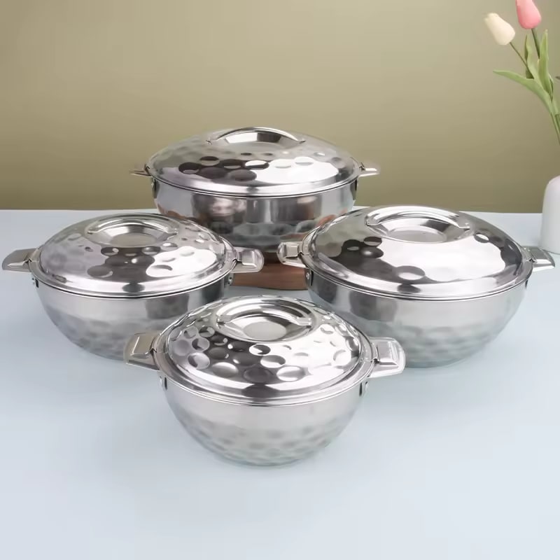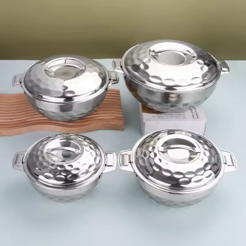 Stainless Steel Insulated Hotpot | 4pcs Set, Sizes 1000/1500/2500/3500, Durable Food Warmer