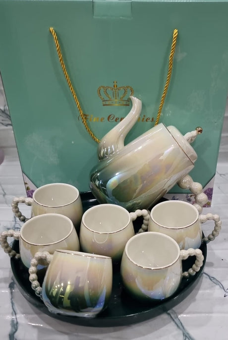 Regular price KSh1,313.00Unit price /UnavailableFine Ceramic 8pcs Rotating Tray Tea Set with 6 Cups and Kettle