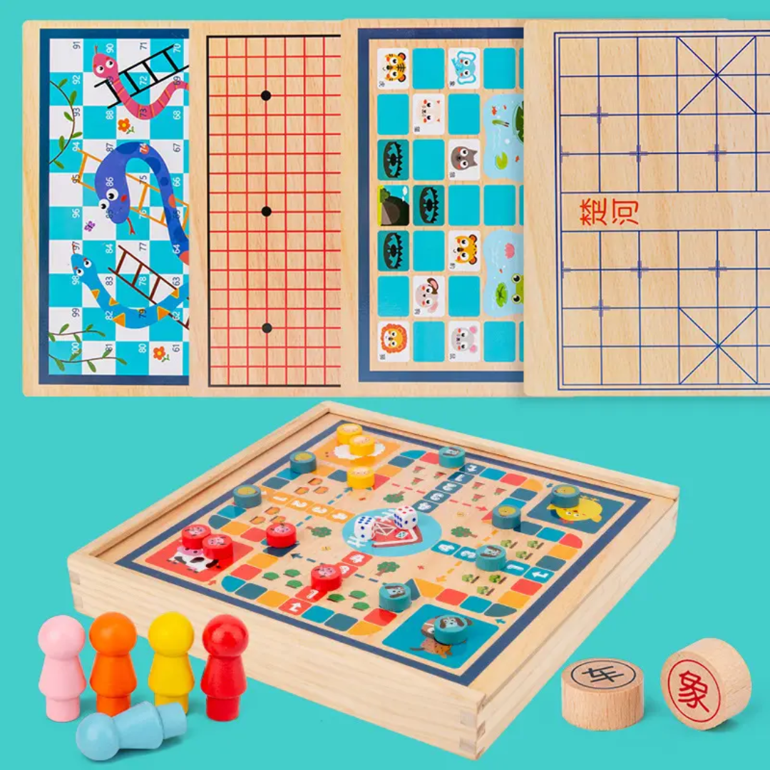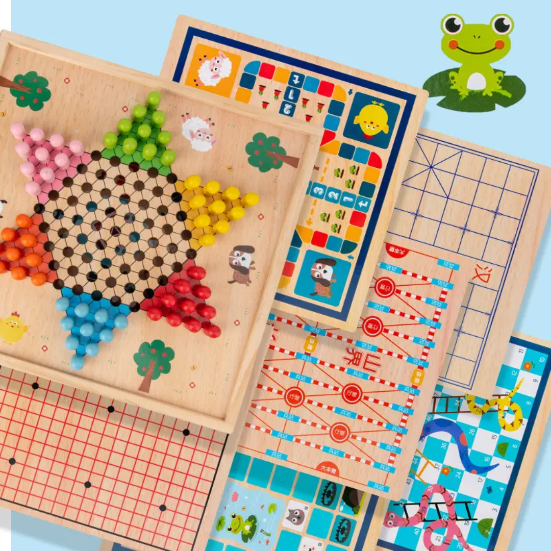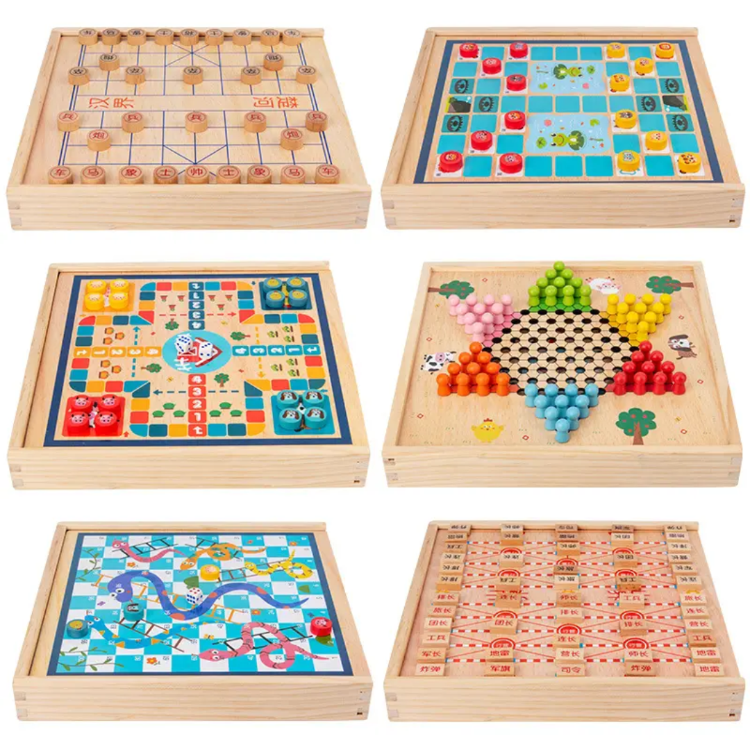 Get hours of fun in one compact set with this 6-in-1 Wooden Board Game collection. Crafted from quality wood, this versatile game board includes classic favorites like Checkers, Ludo, Snakes & Ladders, and Gobang, making it a perfect addition for game nights with family or friends.