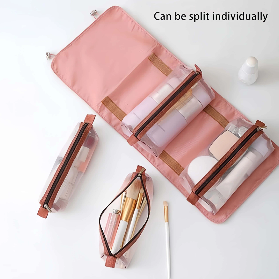 This 4-in-1 cosmetic bag set offers a versatile and organized solution for your makeup, toiletries, and travel essentials. With spacious compartments and detachable mesh pouches, it’s perfect for everyday use or packing on the go.