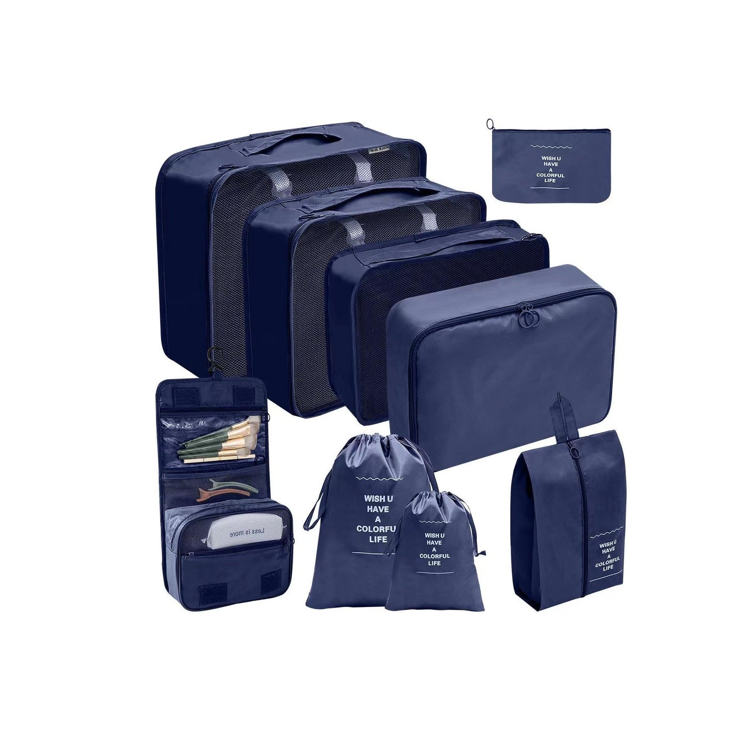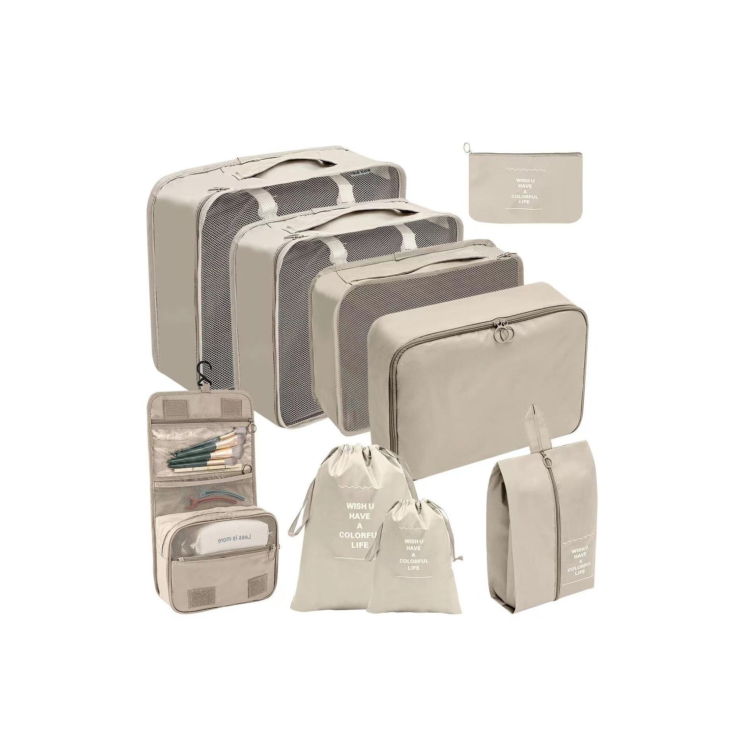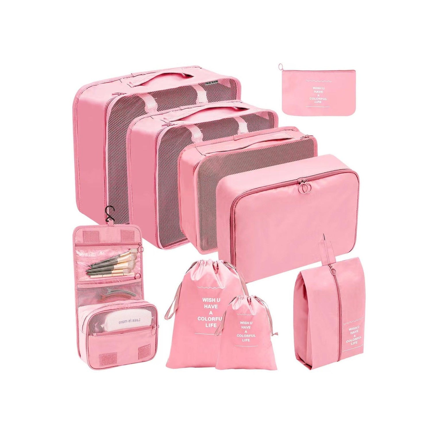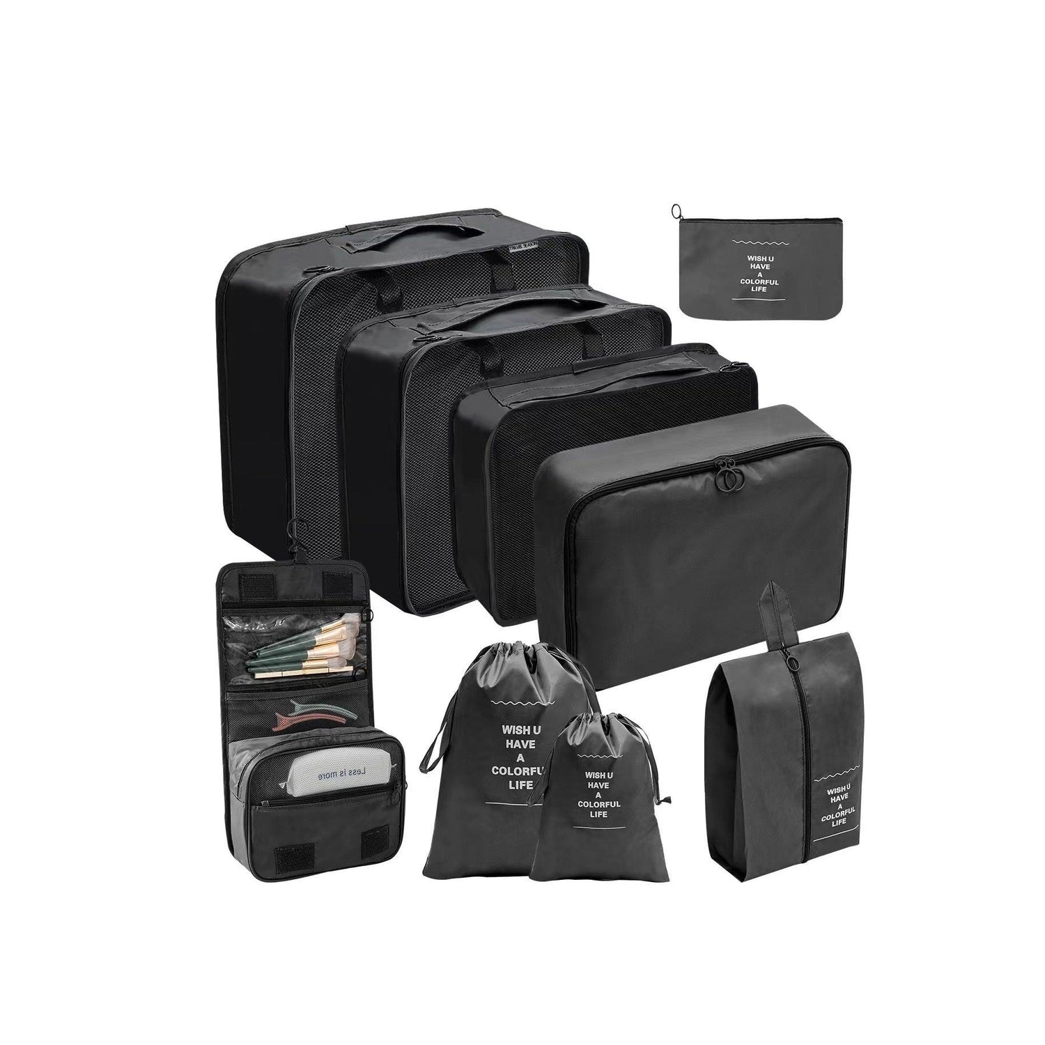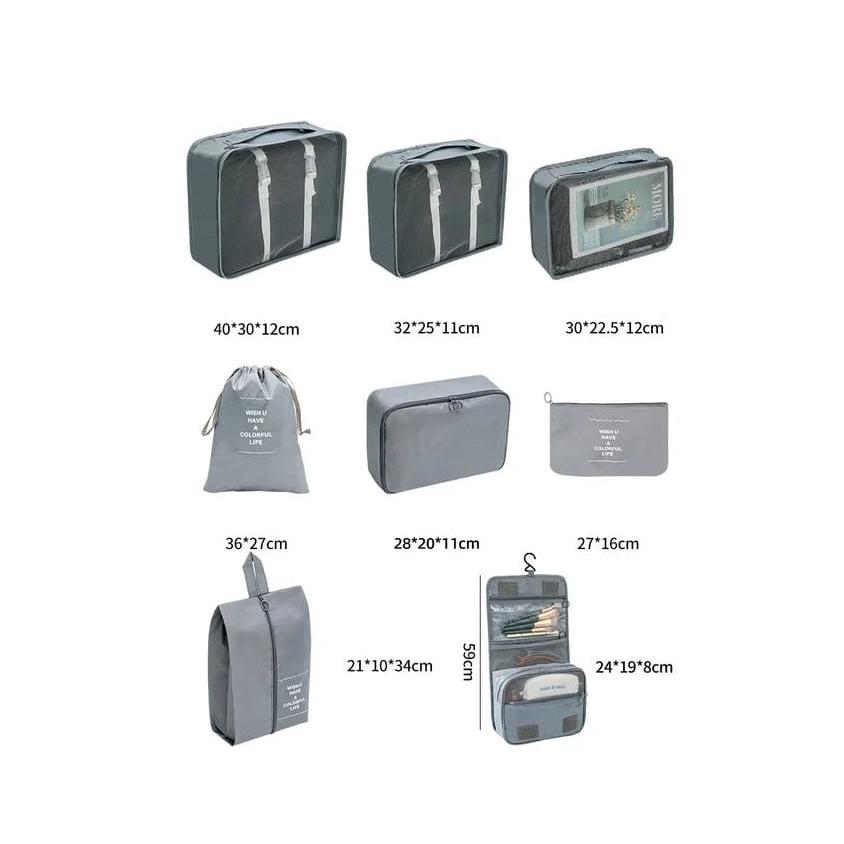 • Total: 9 pieces designed to keep your belongings organized and easily accessible while traveling.