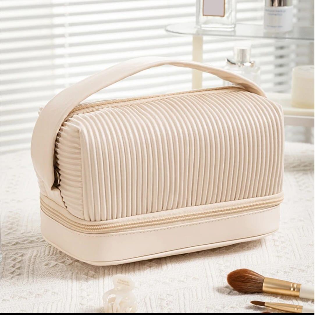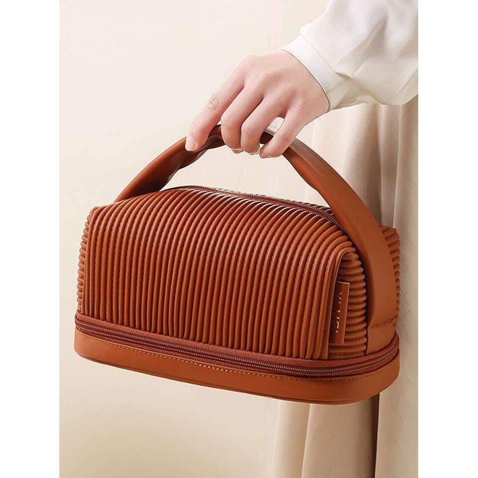 Keep your beauty essentials organized and protected with this Large Capacity Waterproof Double Layer Cosmetic Bag. Perfect for travel or everyday use, this spacious makeup organizer features a double-layer design for convenient storage of cosmetics, skincare products, and accessories. Made from waterproof material, it ensures your items stay safe and dry, while the stylish design makes it a must-have for anyone on the go. Available in cream, brown, and pink, this cosmetic bag combines functionality with chic style