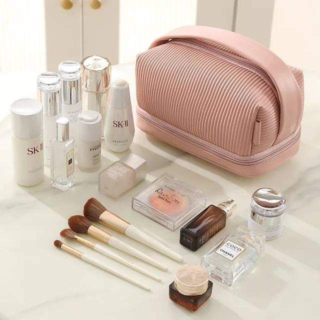 Large Capacity Waterproof Double Layer Cosmetic Bag Makeup Organizer Travel Bag (Cream, Brown, Pink)