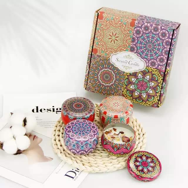 Indulge in the calming ambiance of these 100% Soy Wax Scented Candles, thoughtfully crafted with petals and designed for aromatherapy. Each gift set includes 4 beautifully scented candles that help you relax, evoke pleasant memories, and energize your mind while masking unpleasant odors. These candles make the perfect gift, with each reusable container doubling as an elegant home decor piece after use. Available in a variety of scent combinations, these candles bring serenity and fragrance to any space.