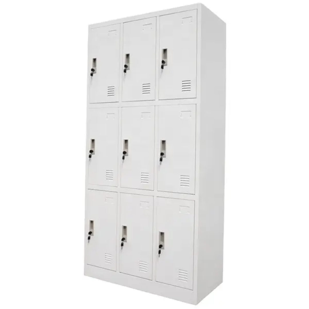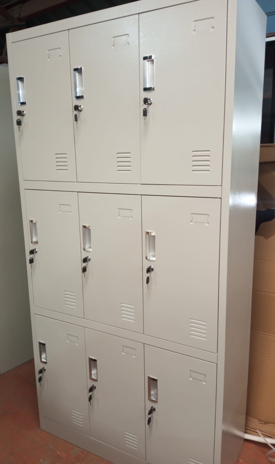 Keep personal items safe and organized with this heavy-duty 12-door metal locker cabinet. Perfect for offices, schools, gyms, or industrial spaces, each compartment comes with a secure lock and ventilation slots. Built to last, this unit combines durability with clean design for modern storage needs.