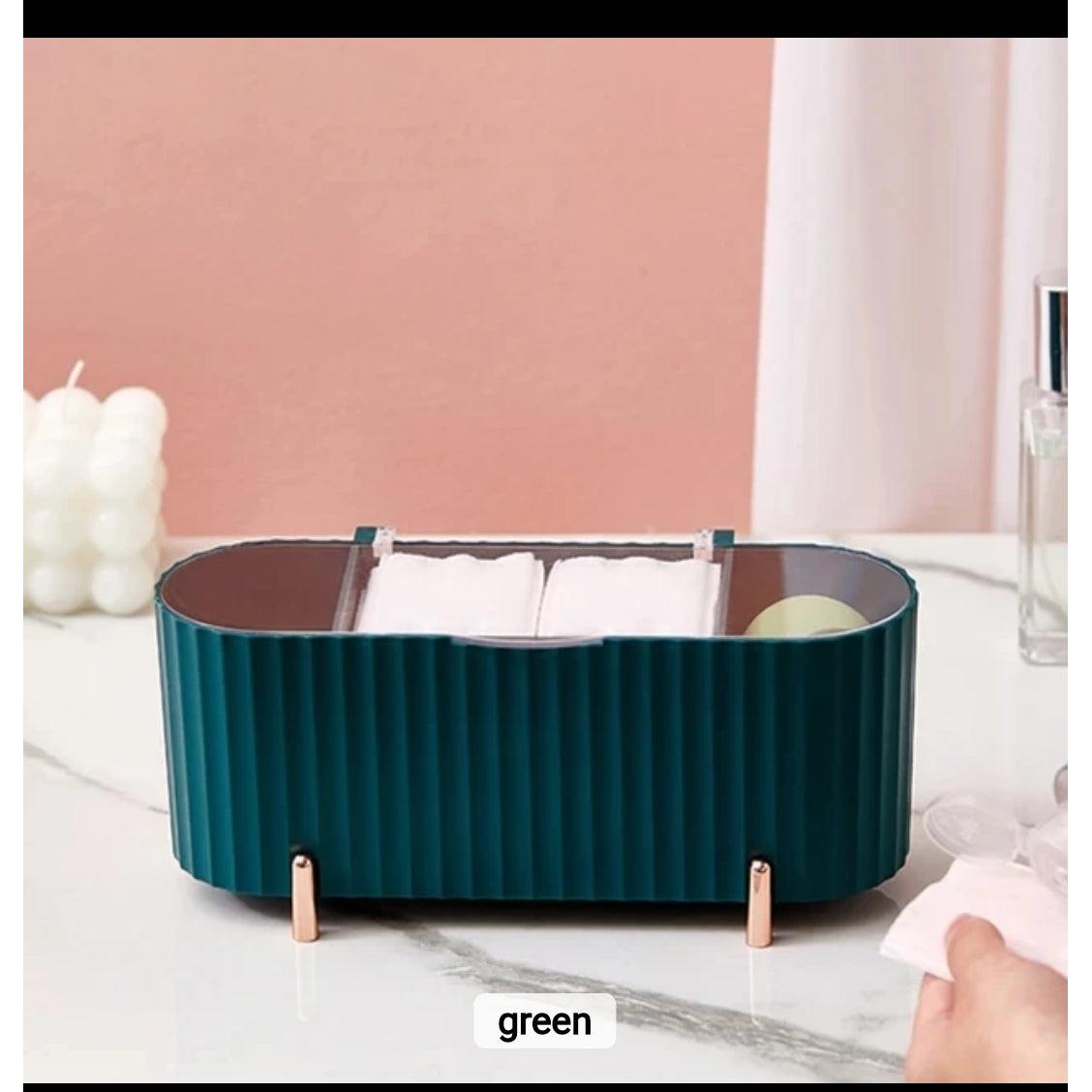 This Cosmetics Storage Box is perfect for bathroom organization, makeup storage, and keeping small accessories like cotton swabs, cosmetic sponges, and jewelry neat and tidy.