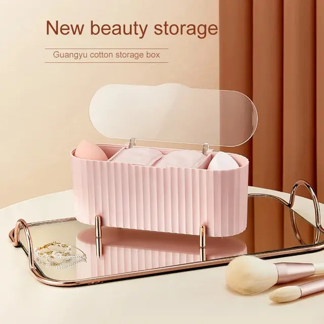 Cosmetics Storage Box | DustProof Makeup Organizer for Cotton Pads, Swabs, Beauty Egg Holder, Bathroom Jewelry Organizer