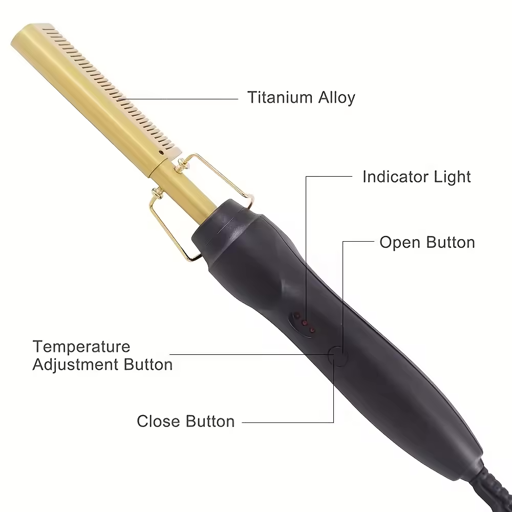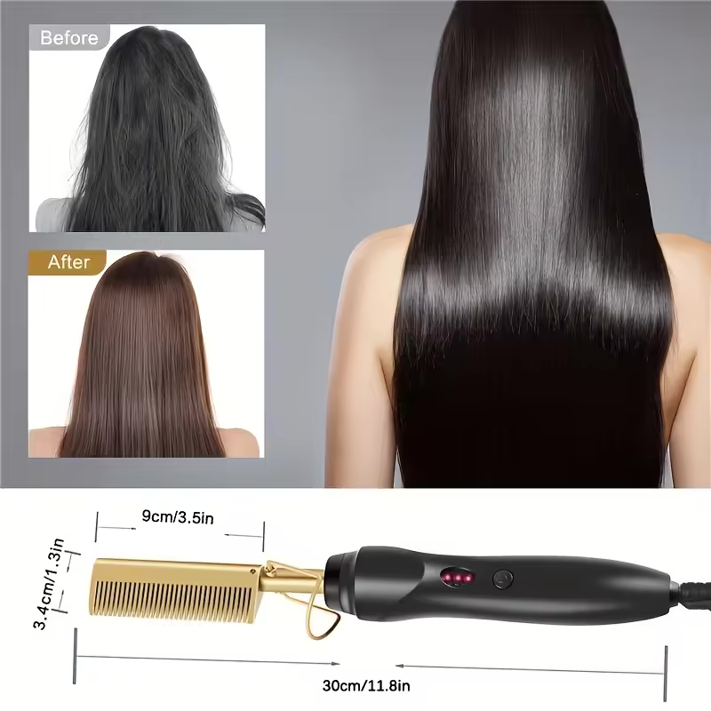 2in1 Thermoelectric Hair Curler & Straightener Hot Comb | Dual Function for Straight or Curly Styles | Adjustable Temperature Control