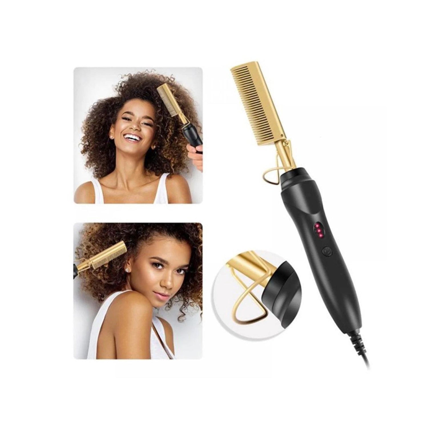 Achieve sleek, shiny, and frizz-free hair with the Gold Ceramic Professional Press Comb. Designed with 48W of power for energy efficiency and adjustable heat settings (low, medium, high), this comb caters to various hair types and styling preferences. Whether you're straightening natural hair or wigs, the ceramic technology ensures even heat distribution while preventing heat damage. With a 240V input and a convenient 3-pin cable, this press comb offers easy connectivity and reliable performance. Enjoy salon-quality results from the comfort of your home.