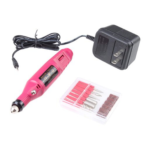 Design: Rotary tool equipped with multiple attachments for detailed nail work.