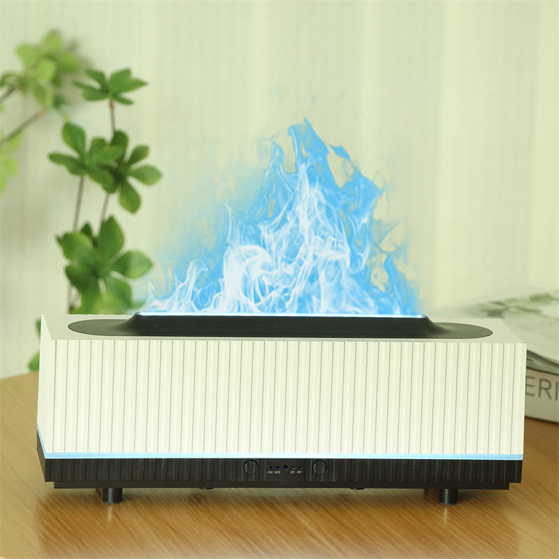 White Stripped 3D Flame Humidifier/Diffuser | 200ml Capacity | Aromatherapy Function with Remote Control
