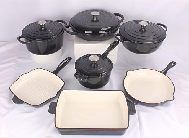 Bring elegance and durability to your kitchen with this premium 11-piece enamel cast iron cookware set from S JADE. Built to last, these heavy duty pieces allow you to cook, bake, and serve with ease, combining function with style. A versatile choice for everyday meals and special occasions.