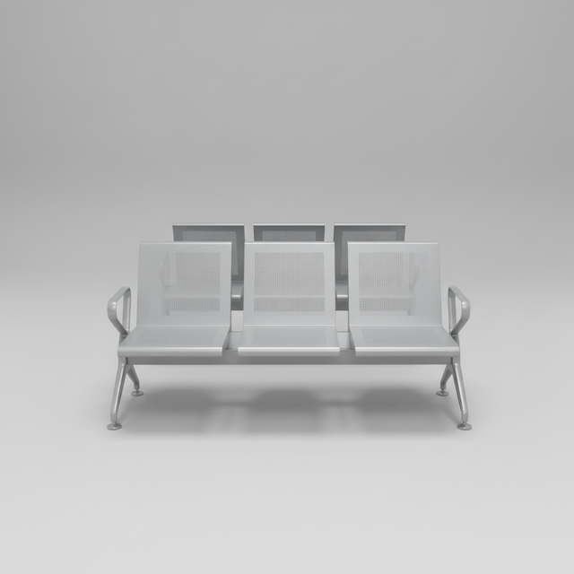 Built for high-traffic environments, this heavy duty 3-seater metal waiting bench offers exceptional durability and strength. This robust seating solution is perfect for airports, hospitals, government offices, banks, and busy public spaces, featuring reinforced steel construction that withstands constant use. The silver powder-coated finish resists scratches and corrosion, while the contoured metal seats and backs provide comfortable support. The heavy-gauge steel frame ensures stability, and the wide armrests offer additional comfort and support.
